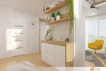 Zadáním majitelky byla dostatečně velká linka s použitím dekoru dřeva, zachování vzdušnosti celého prostoru- světlost.