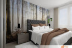 Tapeta v ložnici je velmi vhodná, prostor působí velice útulně a teple společně s vracející se oblíbenosti klasických závěsů. Zde zvolena fototapeta s motivem lesa od firmy Pixers – výhodou těchto tapet je volitelnost velikost výška i šířky tapety.