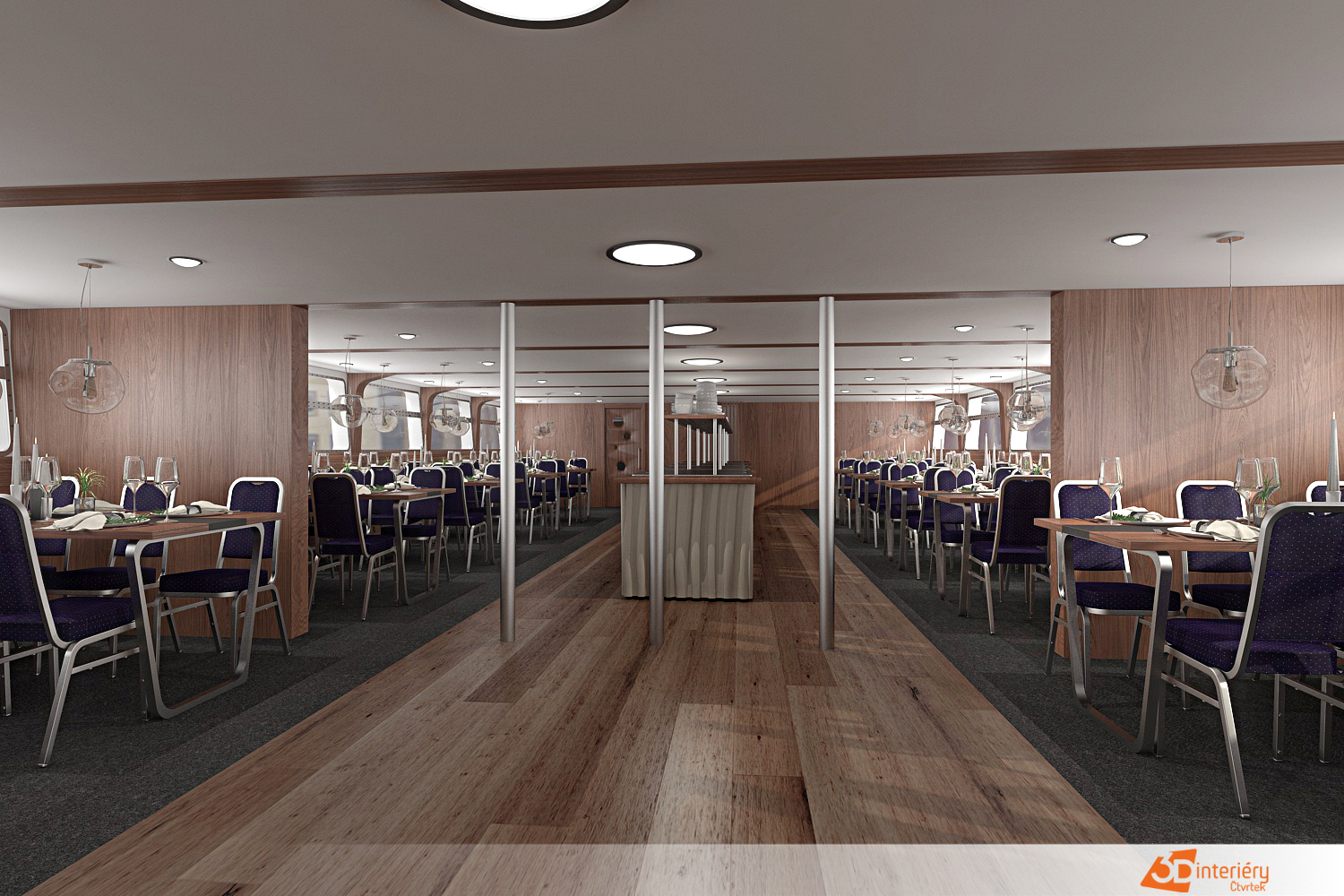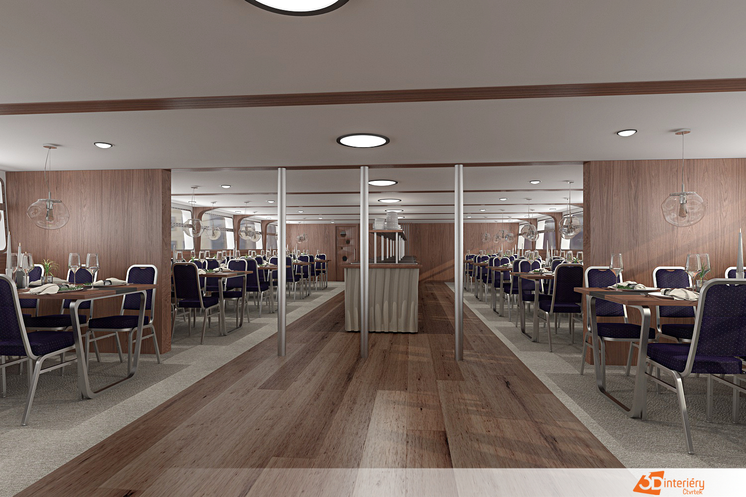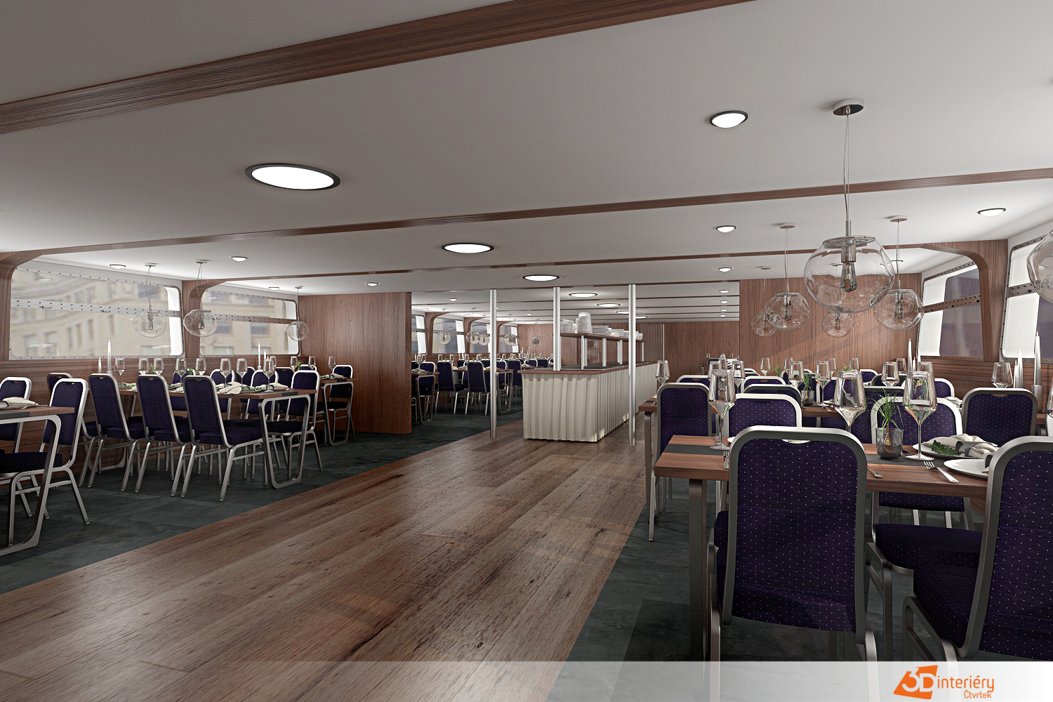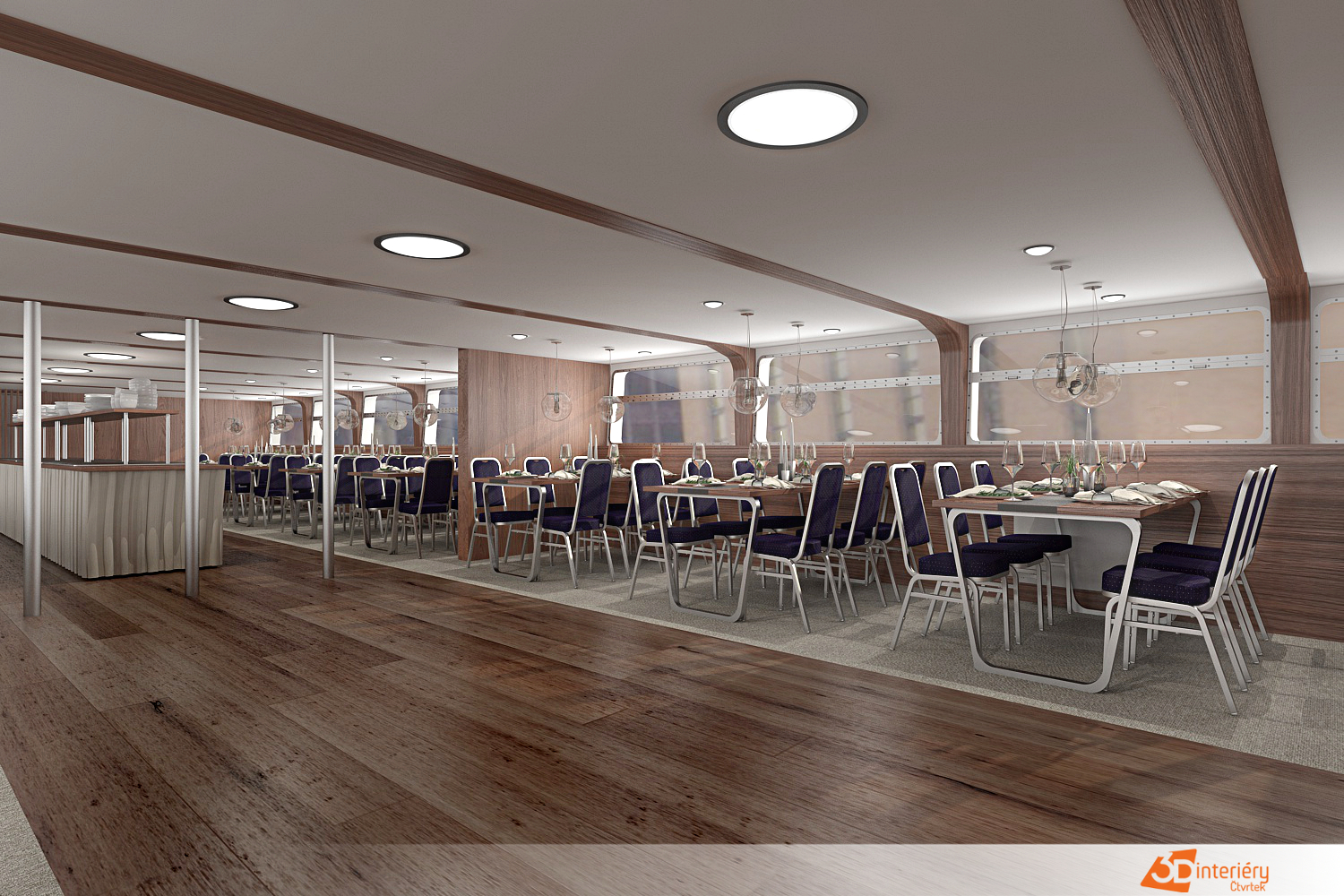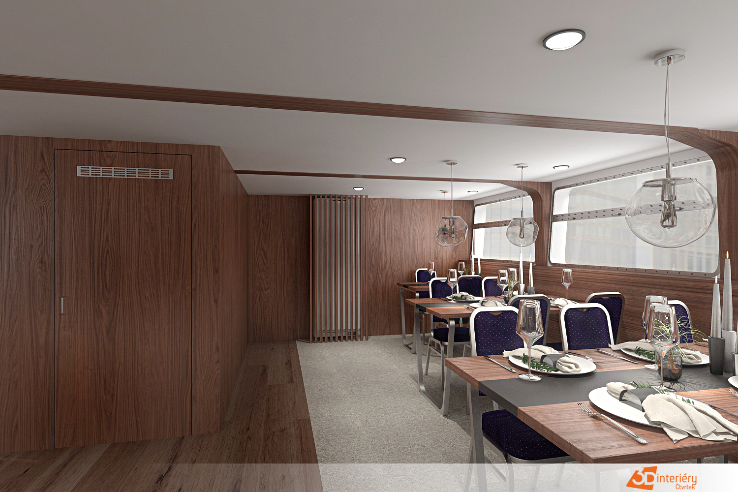 Návrh interiéru výletní lodě Classic River vytváří nezapomenutelný zážitek, který spojuje eleganci s pohodlím. Designérka navrhla prostory tak, aby každý detail podpořil atmosféru klidu, stylu a noblesy. Dřevěné obložení, kovové doplňky a velká okna umožňují přímý kontakt s okolní krajinou a podtrhují autentický charakter plavby.