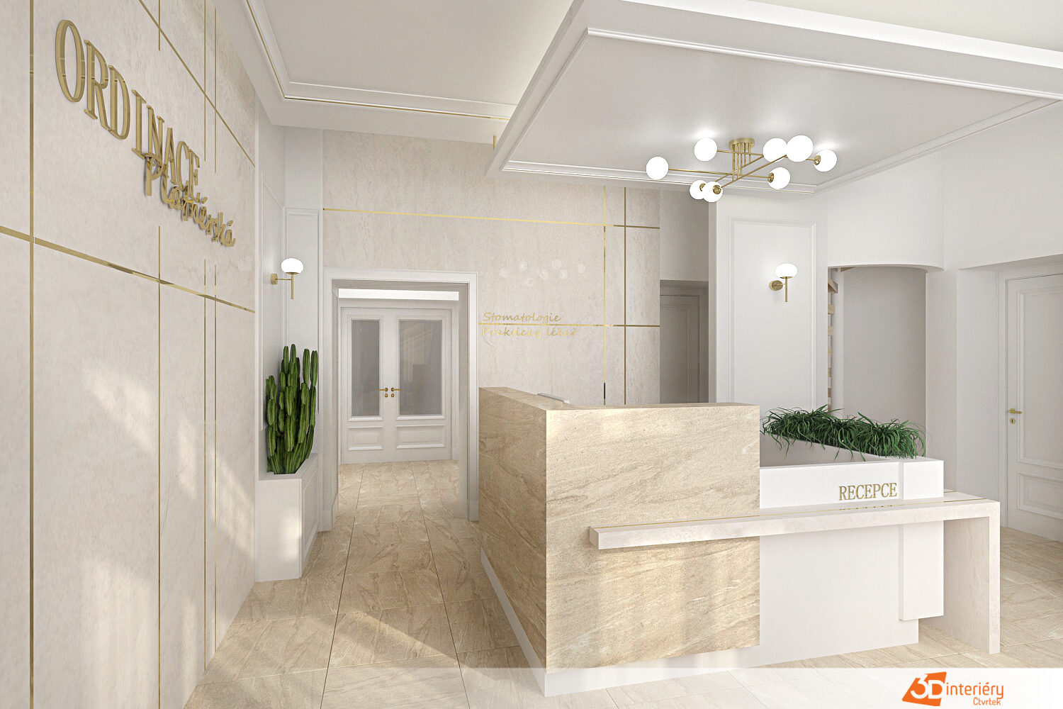 Interiéry v takto významné budově by neměly nikdy být designově klasickou lékařskou budovou jako ostatní. Pokud člověk vejde do recepce pro lékaře v historické části Prahy, nemůže interiér působit jako klasické lékařské prostory recepce, tzn. sterilní a studené. Proto jsem zvolila teplejší barvičky jako je vanilková spojená s bílou a mramorem.