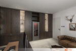 Návrh moderní kanceláře v myslivně od kolegyně Řeháčkové nabízí neobvyklé, ale velmi funkční pracovní prostředí. Designéři hladké stropy doplnili o integrované LED osvětlení. V interiéru převládají přírodní tóny, kombinace dřeva, kůže a kovu vytváří příjemnou rovnováhu mezi tradicí a současností. Místnost doplňuje trezor na zbraně, který připomíná minulost objektu, ale zároveň přináší zajímavý akcent do moderního prostoru.