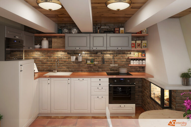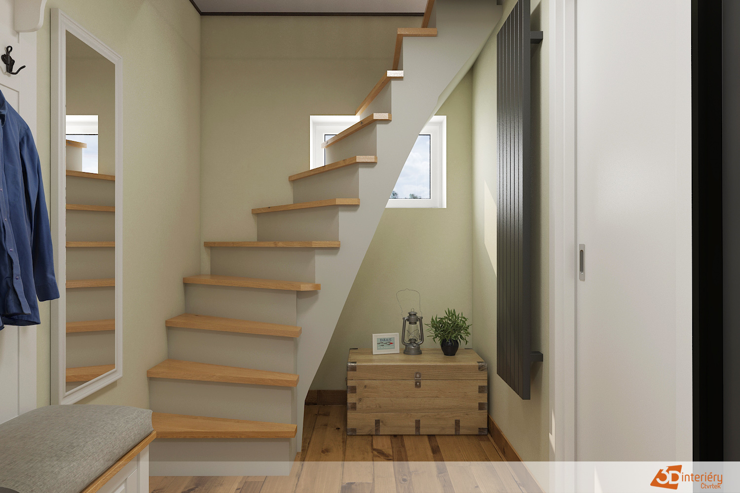 Majitel požadoval vytvořit nejen návrh kuchyně na chatu. Z rekreační chaty se vyklubala starší zachovalá chatka, v chatové oblasti u Prahy. V celém interiéru domu designér zachoval původní bílá okna zvolená v celém objektu. Schodiště do podkroví není nutné měnit, stačil pouze nátěr. V přízemí jsme podlahu renovovali, proto ji zákazníci vyměnili i v dalších místnostech. Česká značka Rako vyrábí serii dlažby VIA, podobnou původní podlaze v domě.