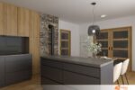 Navržené materiály odolají každodennímu provozu a snadno se čistí. Ergonomické uspořádání usnadní přípravu jídel a přispěje k pohodlnému pohybu mezi jednotlivými zónami. Vysoké skříňky nabídnou dostatek místa pro nádobí i potraviny. Antracit zvýrazní moderní charakter prostoru a podpoří celkovou čistotu designu. Kuchyň slouží nejen k vaření, ale i k setkávání s rodinou a přáteli. Kombinace dubu a antracitu přitom vytváří stylový prostor, ve kterém každý stráví čas s radostí a pohodou.