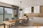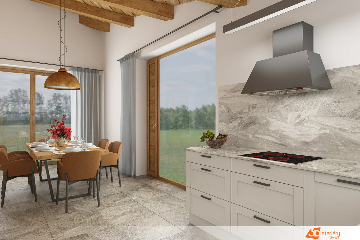 jednoduchá odpověď na tuto otázku neexistuje. Je však důležité designově respektovat oba prostory tak, jako by byl jeden. V interiéru doporučujeme zachovat jednotný dekor podlahy a členit jej např. sádrokartonovými stropy či vzdušnými předěly v podobě skleněných stěn, nik, jídelních stolů a ostrůvků.