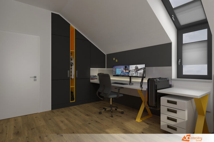 Také se snažíte své dítě všestraně rozvíjet? Náš arhytekt měl možnost pro jednoho takového studenta vytvořit kreativní prostor. Realizovali jsme tak nejen účelný prostor, ale také mentální útočiště, které podporuje učení, klid a osobní rozvoj. Prostor naprojektoval tak, aby podporoval různé aspekty studentského života a včetně potřeb a zájmů jednotlivce. Mezai ty spadá házená, fotografování, vytváření podcastů, ale i hraní her.