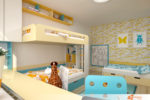 Interiéry Karviná – zákazníci požadovali zpracování návrhu pro dětský pokoj a jejich tři děti. V panelovém bytě v Karviné chtěli zachovat a použit původní vestavné šatní skříně.